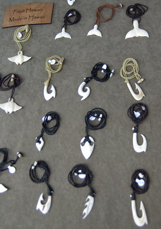 | Hiloのオープンマーケットで見つけたFishHook. ハワイでデザインされた中国製とのこと.価格も$10くらいでリーズナブル.仕上がりが意外と綺麗だったなあ. フィッシュフックと紐はキチンと編み込んで固定されている.適当なやつは穴開けてループにして通すだけだったりするんだよね.これはハワイ製のでも見られます.簡単だからね.でも折角なのでハワイ製が欲しいところ. |