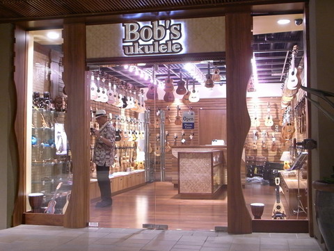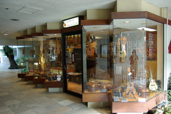 | Bob's Ukulele 1号店 ここは上で説明したbob's Ukuleleの1号店です.マリオットホテルの中なかにあります. 長いお昼休みの後,夕方は5時から開店になりますのでここを訪れるときは時間に気をつけましょう. さほど広くない店舗にも関わらず品揃えは豊富です.R&Lなどは3本も在庫があり,ana'oleのウクレレもおいてありました. ハワイに行ったら絶対に足を運びたいウクレレショップの一つです. 【ショップ】 Bob's Ukulele Marriott Hotell内 2552 Kalakaua Avenue Honolulu, HI 96815 Phone: (808) 372-9623 http://www.bobsukulele.com/ |