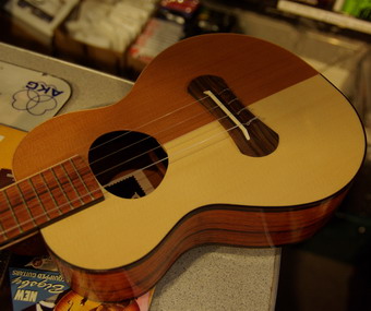 | これは個人ルシアの作ったウクレレみたい.造りは多少あらい感じ. でもLOW-Gでピッチが会うようにセッティングを出しております. |